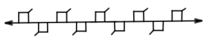 The figure below shows line ( \ell ) with a regular, infinite, recurring pattern of squares and line segments. How many of the following rigid motions, other than the identity, will transform the figure into itself?