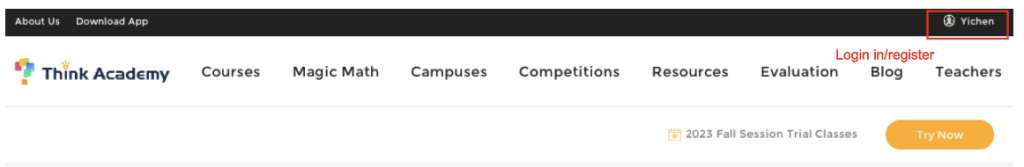 Step 1: Register a Think Academy account at https://www.thethinkacademy.com/.