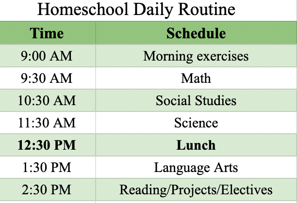 - Homeschooling Schedules