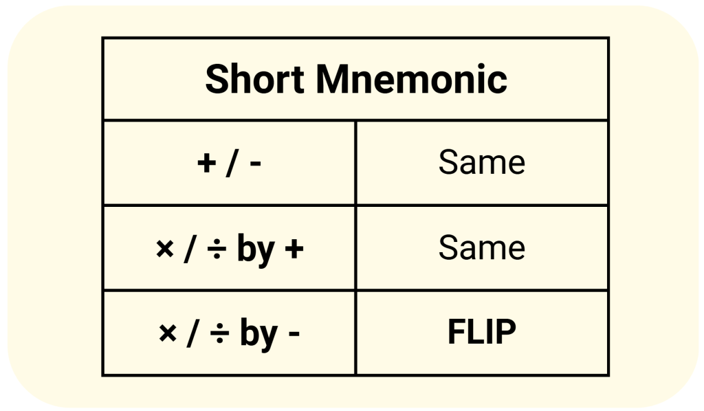 - Divide by a negative number β sign flips.