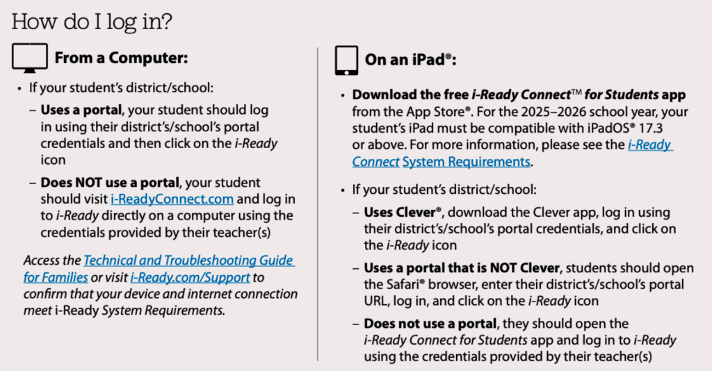 - Direct portal: i-Ready Login
