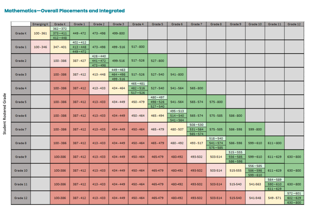 | i-Ready | 100–800 | Grade 3 Math ≈ 440–500 | Grade 3 student scoring 550+ | i-Ready Diagnostic Grades K–12 Scale Score Placement Tables | How to Interpret i-Ready Scores |