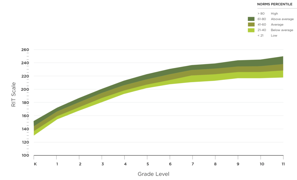 - RIT scale: 140–300