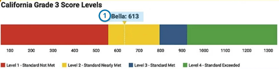 - Bella’s score of 613 on the Star Reading test results in a placement in Level 2, below the target of Level 3.