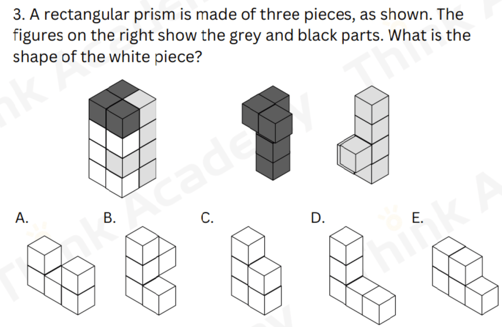- Three Views: Identifying how an object looks from the top, front, or side.