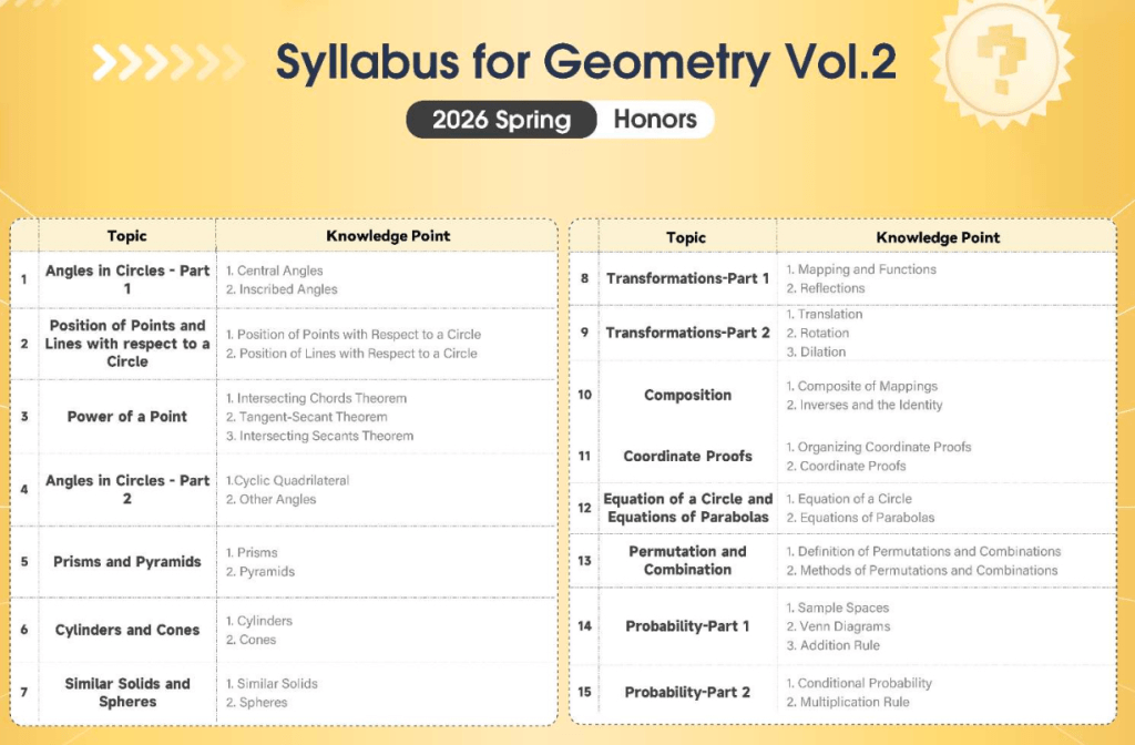 Here’s a streamlined 15-lesson pathway that mirrors how strong Geometry understanding is built: from fundamentals→ applications.