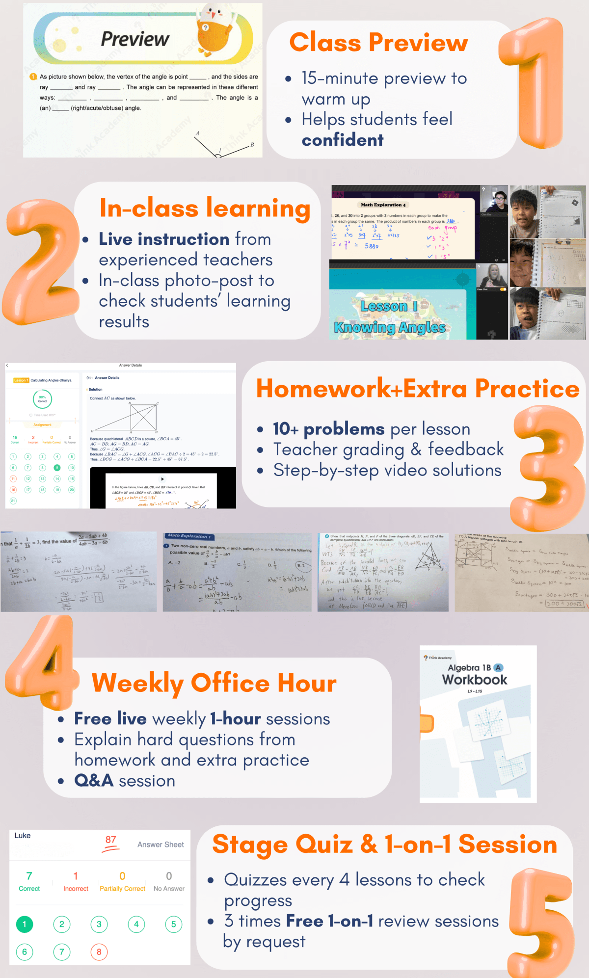 - After class: homework with support + teacher correction + weekly learning report