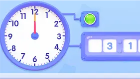 Our online math educational games include this time-telling challenge that builds logical reasoning while teaching essential life skills. Suitable for different grades, this interactive math learning platform helps elementary students understand analog and digital clocks, supporting home education with fun math learning tools that improve academic performance.
